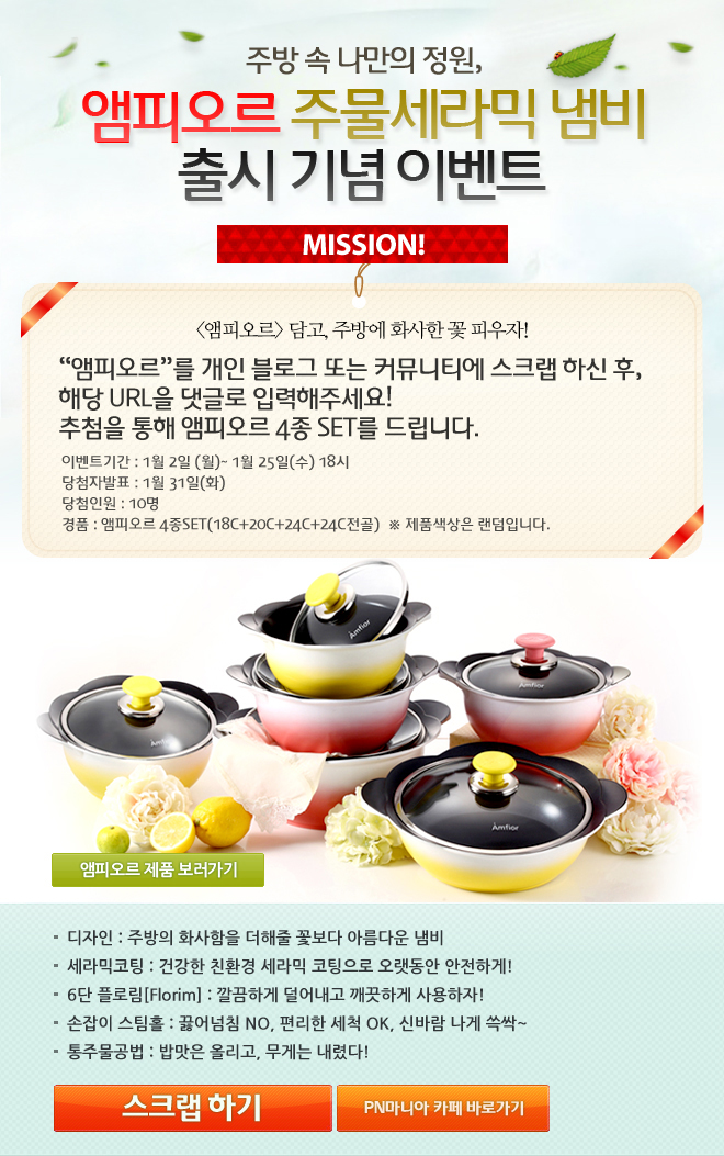 http://twtkr.olleh.com/eun4321/status/162303771421052930 http://www.facebook.com/seungeun.i2/posts/154714291309763 http://yozm.daum.net/nox7508/101905225 http://me2day.net/bestlife4321/2012/01/26/pysmhg1-_u0k6 앰피오르 주물세라믹냄비세트 완전좋아요.^^
