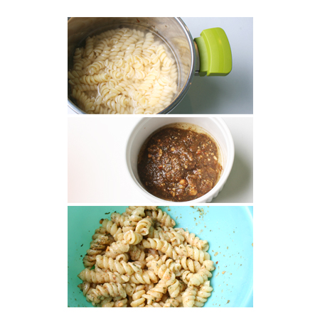 04. 01의 푸실리를 건져 볼에 담고, 03의드레싱과 버무려 준 후 채소와 곁들이면 완성~!